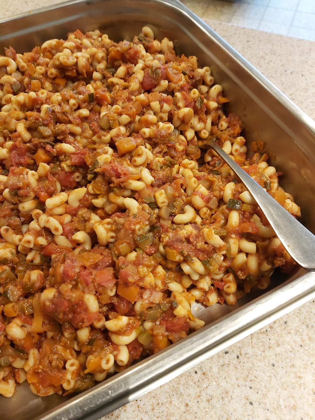 Het menu voor vrijdag 1 mei is: Macaroni.